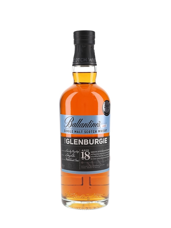 A bottle of Glenburgie 18 Year Old Single Malt Scotch Whisky. This was bottled by Ballantine's for series #1 in their line of bottlings that highlights the three key single malts used in the Ballantine's Blend; Miltonduff, Glentauchers and Glenburgie. The bottling code indicates this was bottled in 2023.