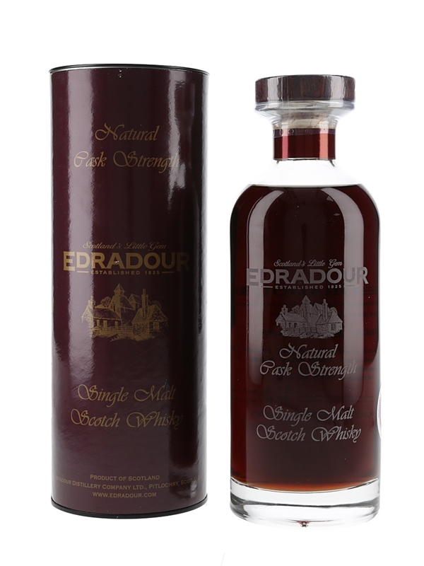 A bottle of Edradour 12 Year Old Natural Cask Strength Single Malt Scotch Whisky. This was distilled on 24 April 2009, matured in a single cask and bottled at natural cask strength on 19 May 2021.