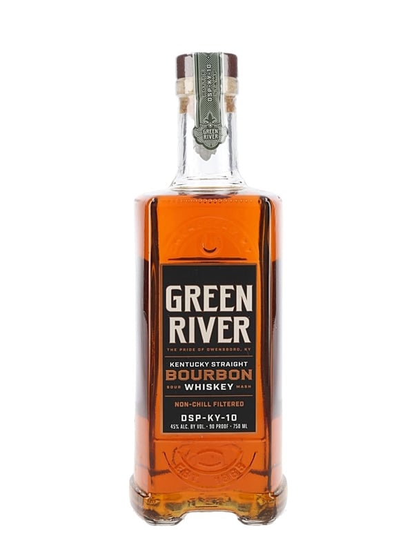 A bottle of Green River Kentucky straight bourbon whiskey produced in Kentucky and bottled at 45% ABV.