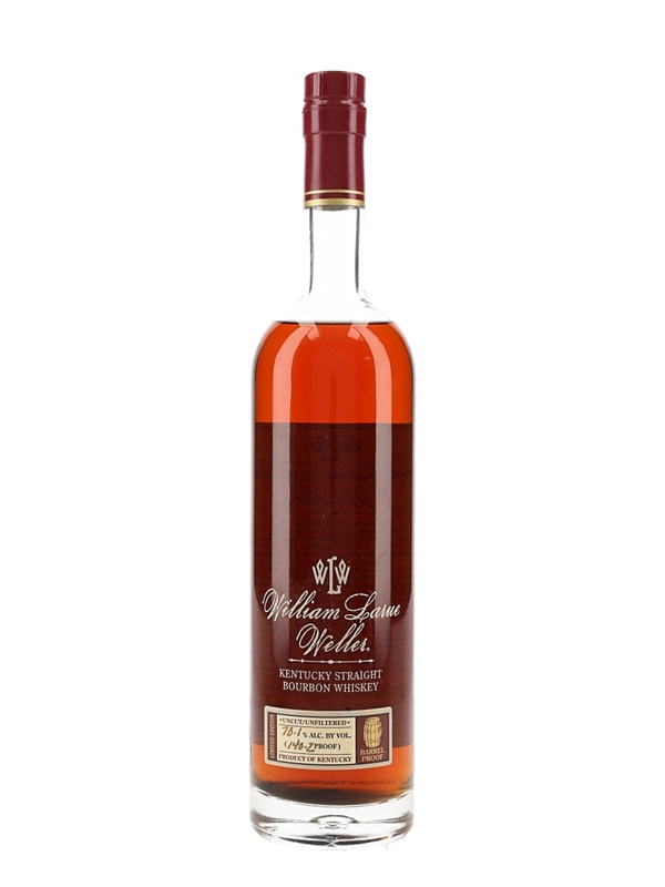 A bottle of William Larue Weller Barrel Proof Kentucky Straight Bourbon Whiskey, bottled at 70.1% ABV and released in 2014 as part of the Buffalo Trace Antique Collection.