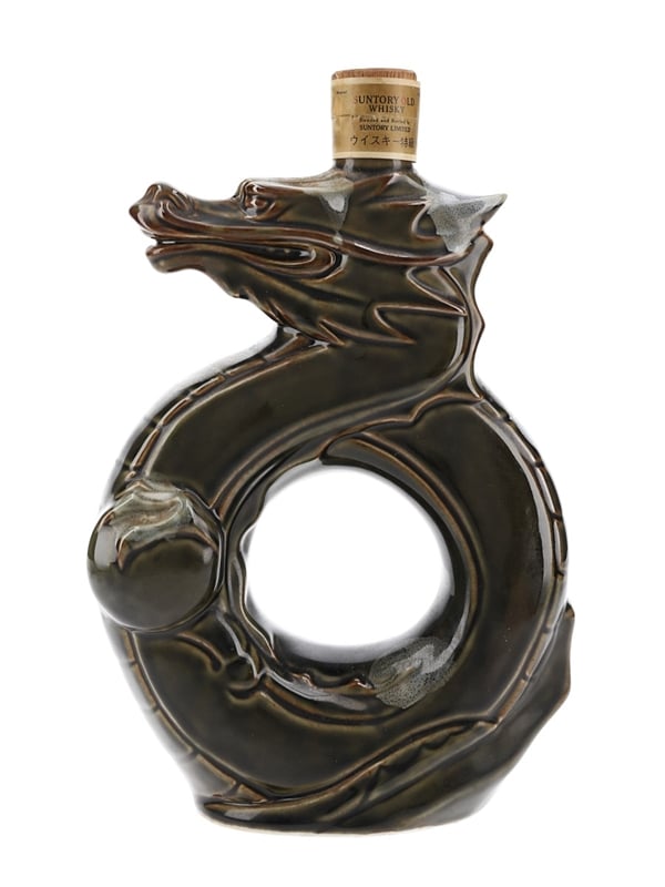 A bottle of Suntory Japanese Whisky, presented in a porcelain decanter, released to celebrate the Chinese zodiac Year of the Dragon in 1988.
