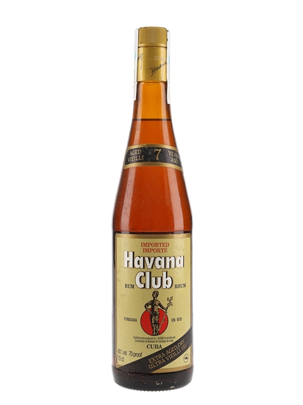 A bottle of Havana Club Añejo Seco 7 Year Old rum from Cuba. This was imported to the Spanish market, we estimate in the 1990s.