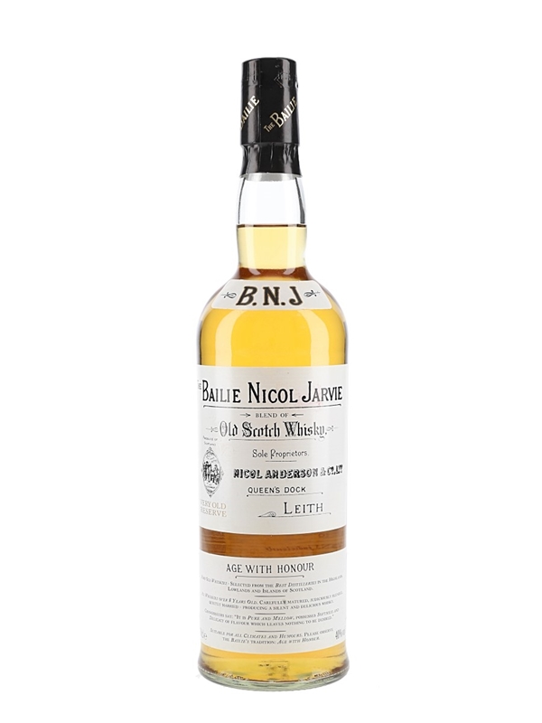 A bottle of The Bailie Nicol Jarvie 8 Year Old Blended Scotch Whisky. This bottling was discontinued by Glenmorangie in 2014.