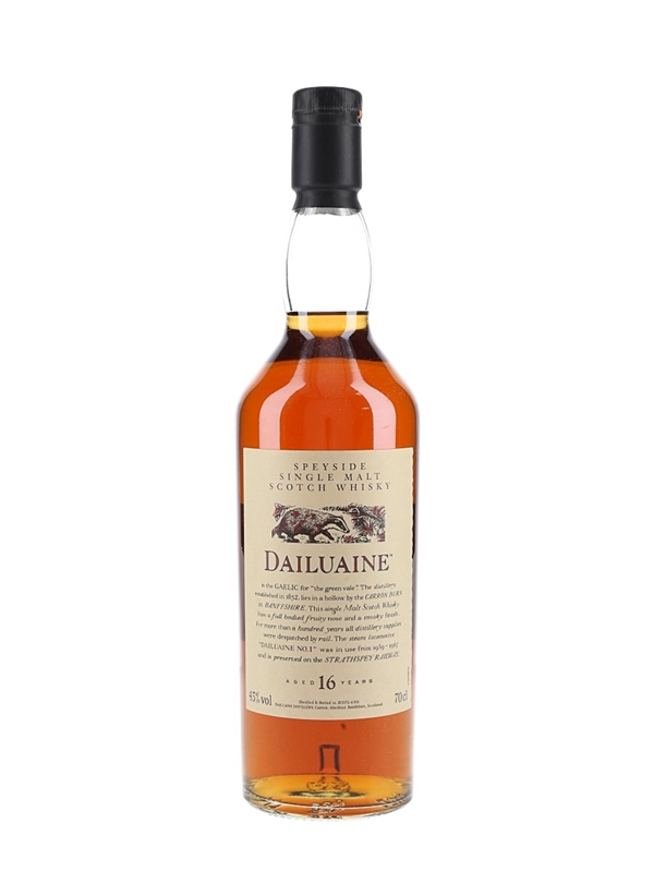 A bottle of Dailuaine 16 Year Old Speyside Single Malt Scotch Whisky, bottled for Diageo's Flora & Fauna series.