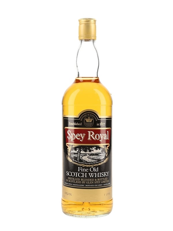 A litre bottle of Spey Royal Fine Old Scotch Whisky, distilled, blended and bottled at the Glen Spey distillery by W & A Gilbey Ltd. We estimate this was bottled in the 1970s.