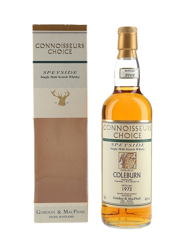 A bottle of Coleburn 1972 Speyside Single Malt Scotch Whisky. This was distilled in 1972 and bottled in 2000 by Gordon & Macphail for their Connoisseur's Choice series.