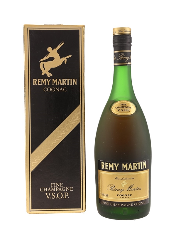 A bottle of Rémy Martin VSOP Fine Champagne Cognac. We estimate this was bottled in the 1980s.