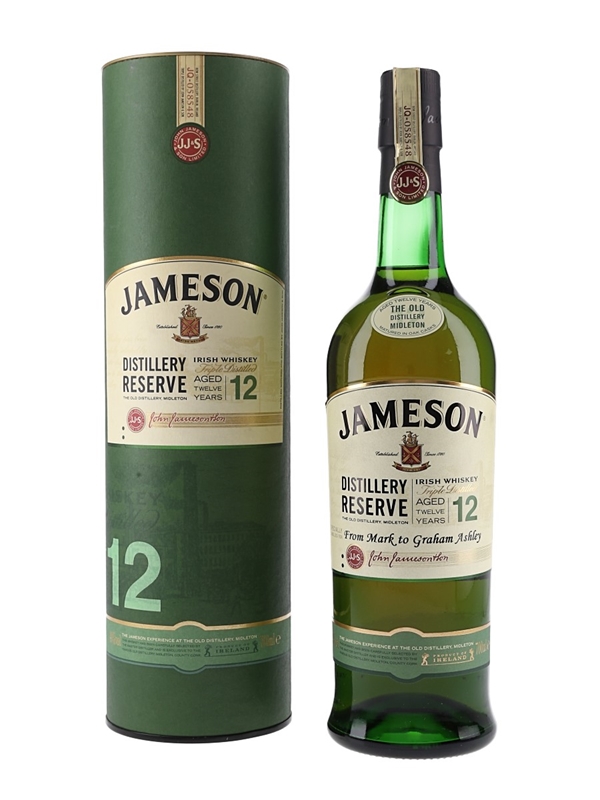 A bottle of Jameson 12 Year Old Distillery Reserve, exclusive to the Old Distillery, Midleton, County Cork. This was specially labelled for London's Merchant House cocktail bar.