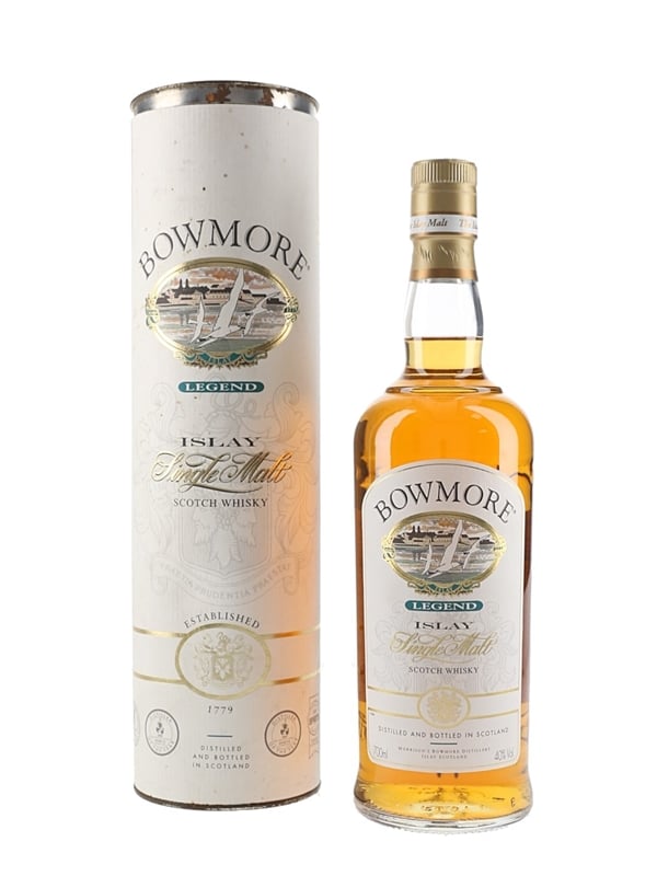 A bottle of Bowmore Legend Islay Single Malt Scotch Whisky, bottled at 40% ABV. We estimate this was bottled in the early 2000s.