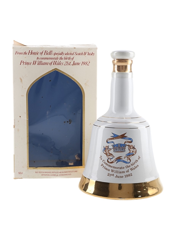 A 50cl bottle of Bell's Scotch Whisky produced by Arthur Bell & Sons, presented in a ceramic decanter and released to celebrate the birth of Prince William of Wales in 1982.