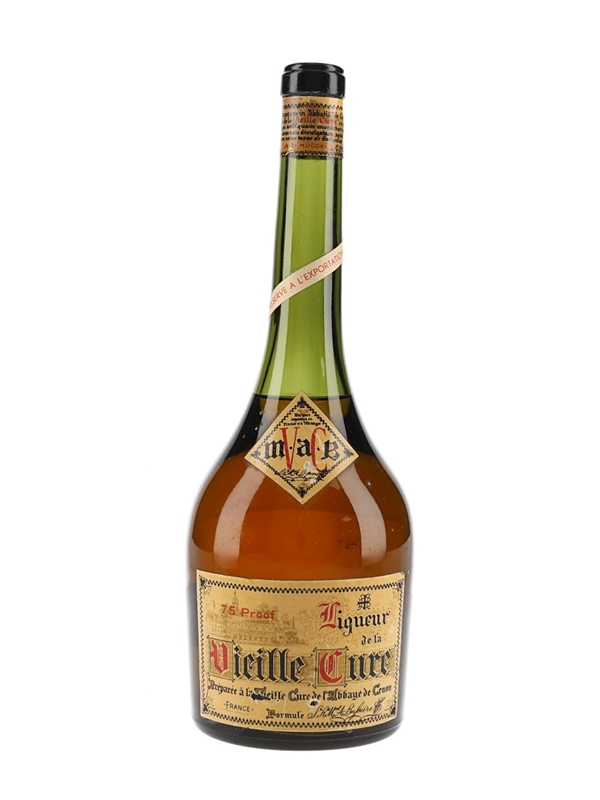 A bottle of Liqueur de la Vieille Cure, a herbal liqueur prepared at l'Abbaye de Cenon, Bordeaux. We estimate this was bottled in the 1970s.