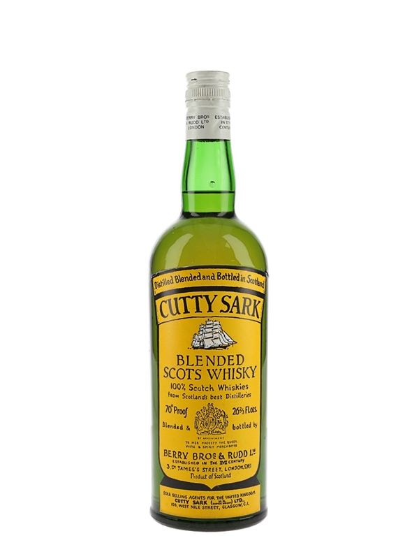 A bottle of Cutty Sark Blended Scots Whisky, produced by Berry Bros & Rudd. We estimate this was bottled in the 1970s.