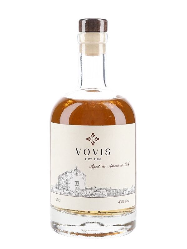 A 50cl bottle of Vovis Dry Gin aged in American oak produced in the Netherlands and bottled at 43% ABV.
