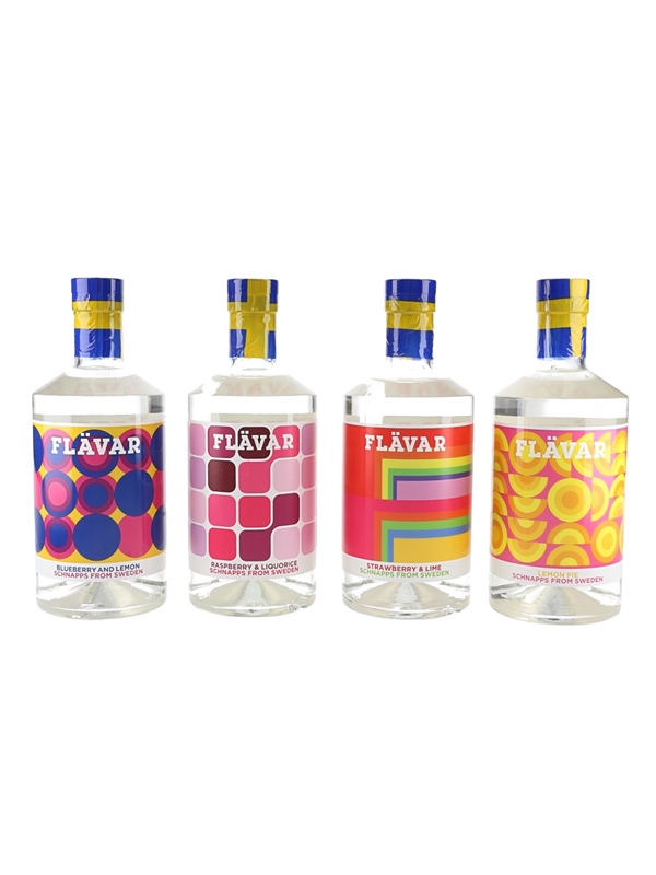 This lot contains four bottles of Flävar Schnapps from Sweden including Lemon Pie, Blueberry & Lemon, Strawberry & Lime and Raspberry & Liquorice.