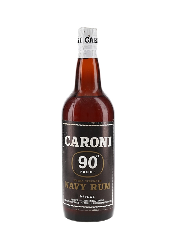 A bottle of Caroni 90 Proof Extra Strong Navy Rum. This was imported to the UK by Tate and Lyle and bottled at 51.4% ABV, we estimate in the 1960s.