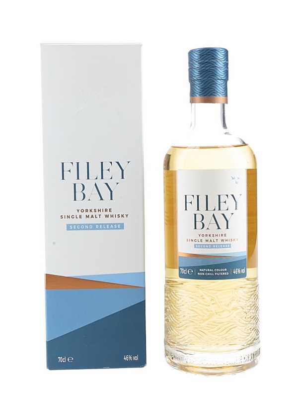 A bottle of Filey Bay Yorkshire Single Malt Whisky Second Release .