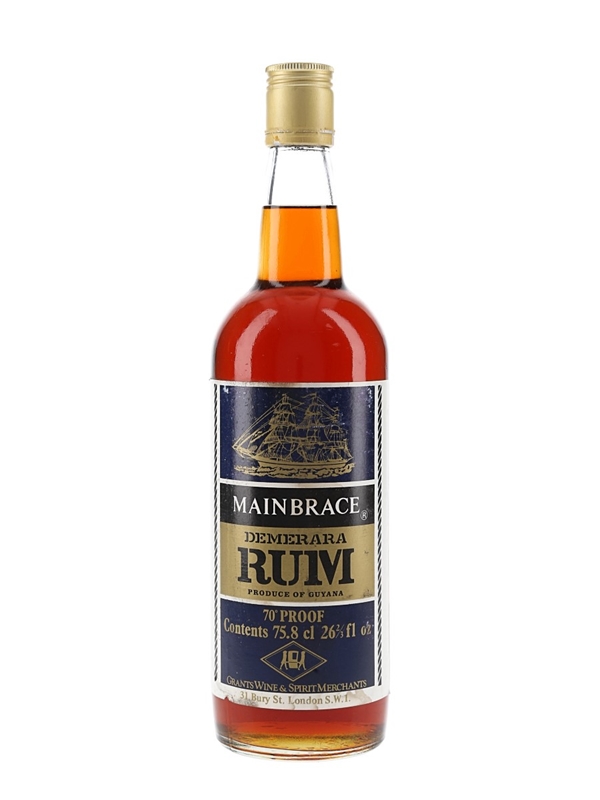 A bottle of Mainbrace Demerara Rum, imported from Guyana to the UK by Grants Wine & Spirits. We estimate this was bottles in the 1970s.