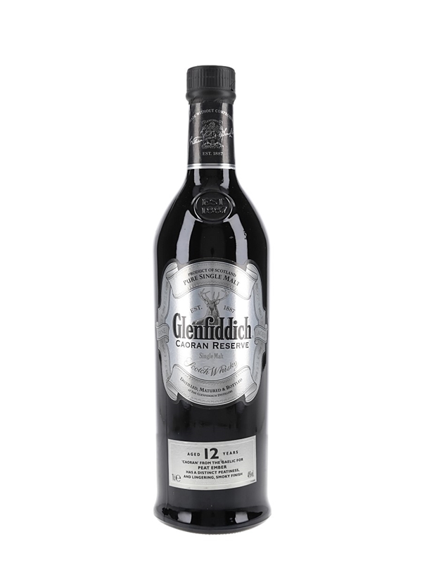 A bottle of Glenfiddich's discontinued Caoran Reserve 12 Year Old Single Malt Scotch Whisky. Subtitled 'Peat Ember', this uses lightly peated barley for a smoky twist on the traditional Glenfiddich character.