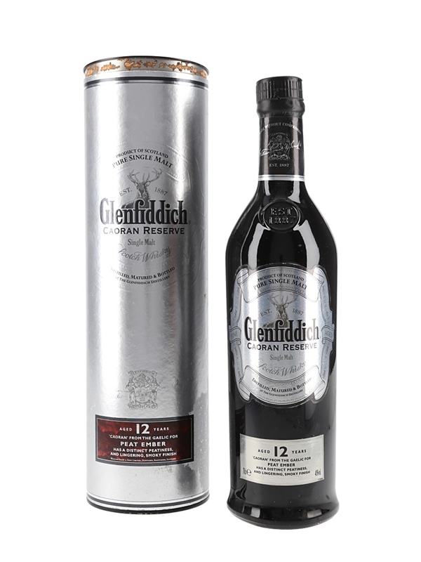 A bottle of Glenfiddich's discontinued Caoran Reserve 12 Year Old Single Malt Scotch Whisky. Subtitled 'Peat Ember', this uses lightly peated barley for a smoky twist on the traditional Glenfiddich character.