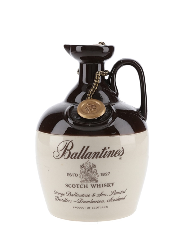A ceramic decanter of Ballantine's Scotch Whisky, blended and bottled by George Ballantine & Son. Limited. We estimate this was bottled in the 1980s.