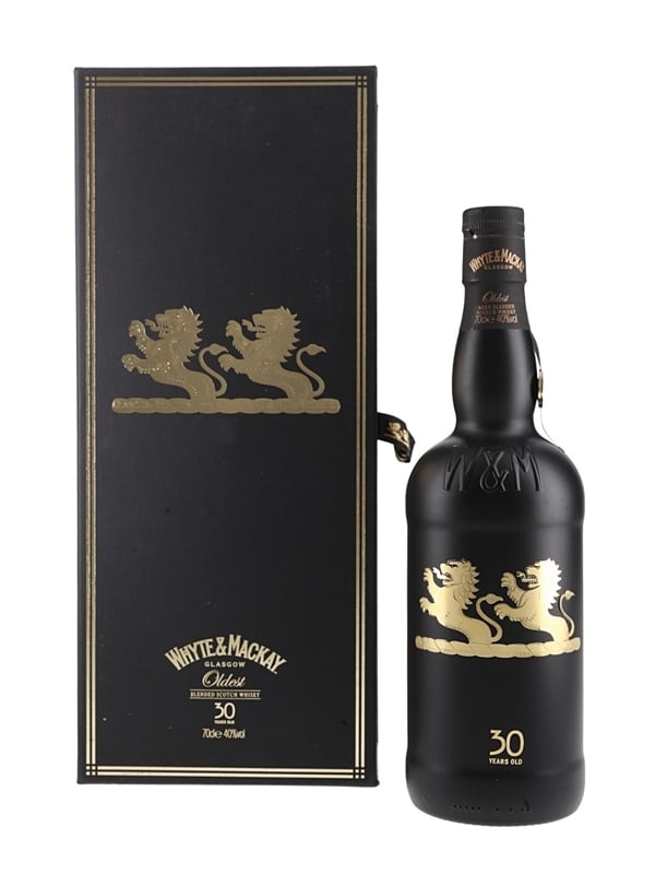 A bottle of Whyte & Mackay 30 Year Old Oldest Blended Scotch Whisky. This was launched in 2008 and it replaced the award-winning Rare Reserve.