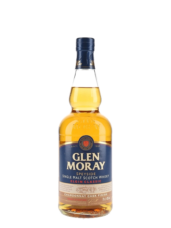 A bottle of Glen Moray Elgin Classic Speyside Single Malt Scotch Whisky.