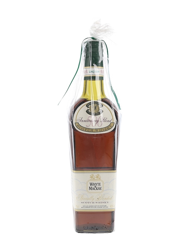 A bottle of Whyte and Mackay 500 Anniversary Specially Blended Scotch Whisky. This blend of 20 to 25 year old whiskies was matured in Spanish oloroso sherry casks and blended together in 1993.