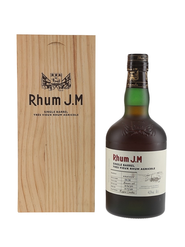 A 50c bottle of Rhum J.M Single barrel Tres Vieux Rhum Agricole. Distilled on the 4th November 2005 selected by Amathus and bottled on the 8th June 2017.