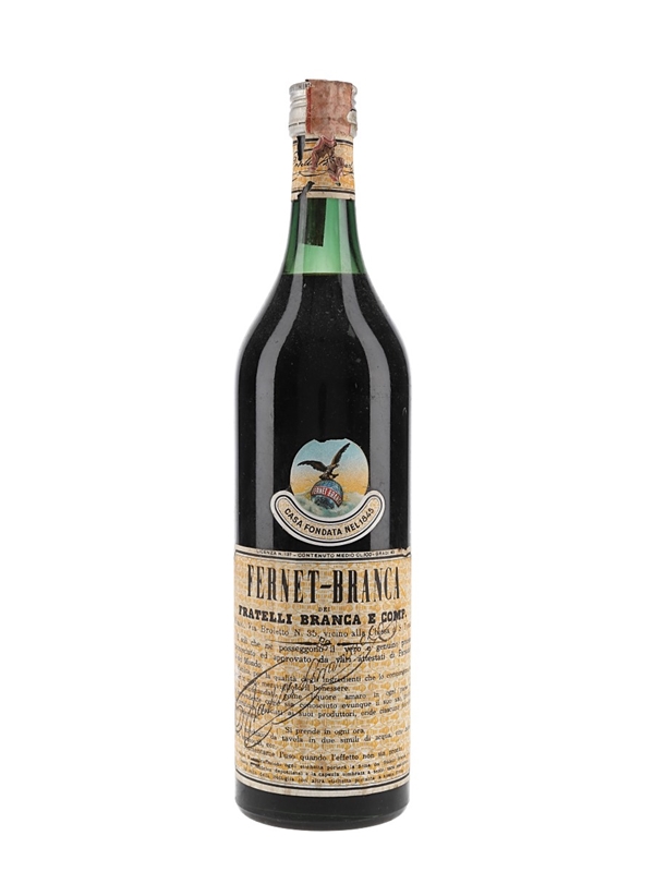 A bottle of Fernet Branca bitter liqueur. We estimate this was bottled in the 1970s.