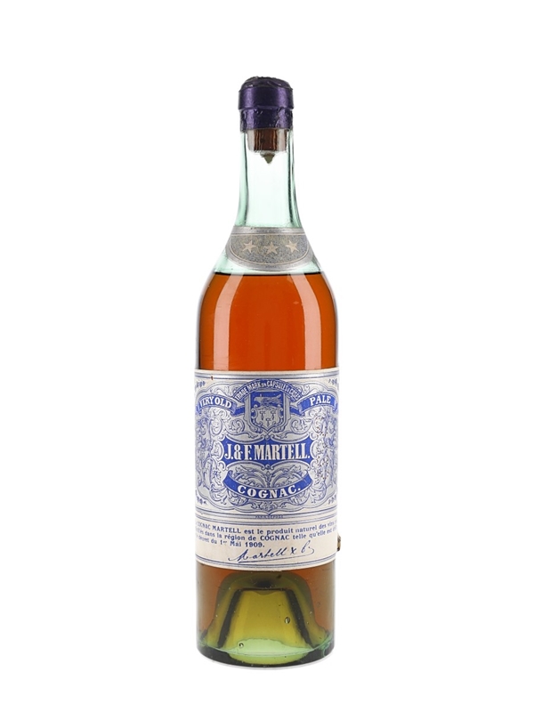 A bottle of Martell 3 Star Very Old Pale Cognac, sealed with a driven cork. We estimate this was bottled in the 1920s to 1930s.