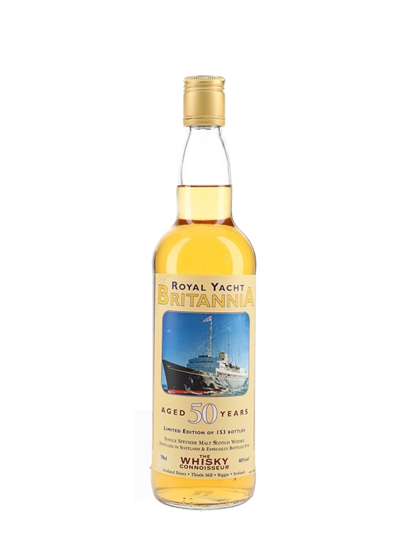 A bottle of Royal Yacht Britannia Speyside Single Malt Scotch Whisky, bottled exclusively for The Whisky Connoisseur for the 50th Anniversary of the Britannia.