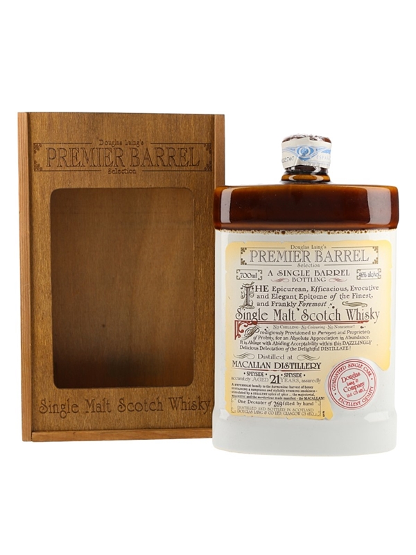 A bottle of Macallan 21 Year Old Premier Barrel Single Malt Scotch Whisky. This was bottled by Douglas Laing as part of the Premier Barrel Selection.