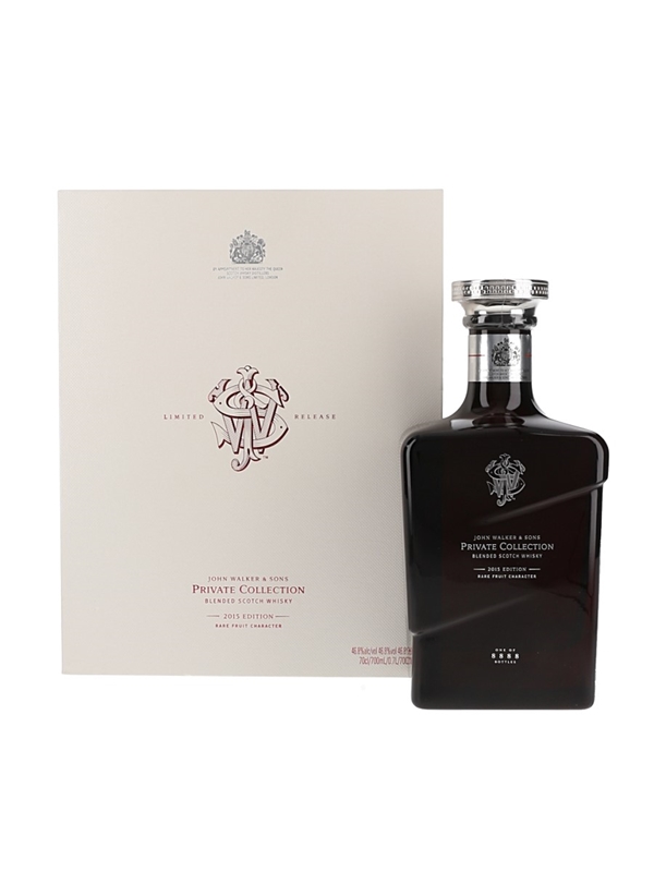 A limited edition bottle of John Walker & Sons Private Collection Blended Scotch Whisky. This is the 2015 edition.