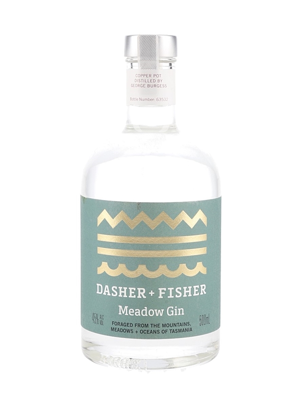 A bottle of Dasher & Fisher Meadow Gin produced in Australia and bottled at 45% ABV.