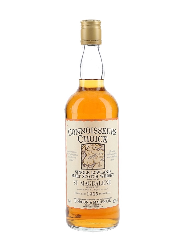 A bottle of St Magdalene 1965 Single Lowland Malt Scotch Whisky bottled by Gordon & MacPhail as part of the Connoisseurs Choice series. We estimate this was bottled in the late 1980s to early 1990s.