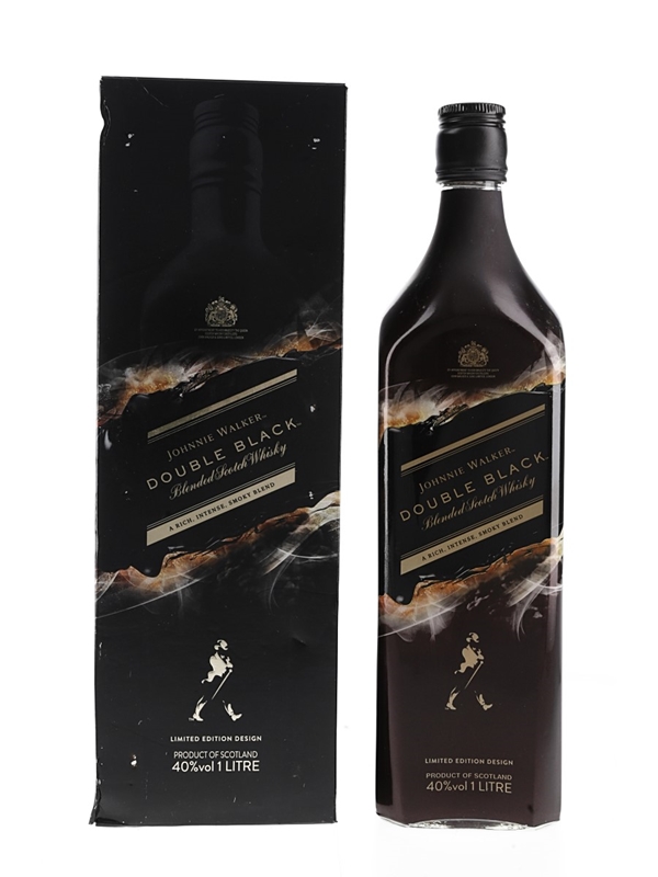 A litre bottle of Johnnie Walker Double Black New Limited Edition blended Scotch whisky, a smokier take on the standard Black Label.