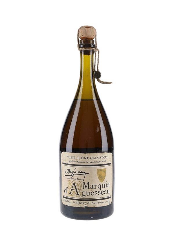 A bottle of Chateau d'Hebertot Marquis d'Aguesseau Vieille Fine Calvados.