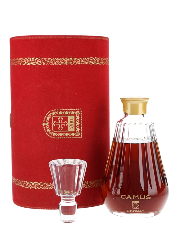 A Camus Cognac presented in a Baccarat crystal decanter with stopper.