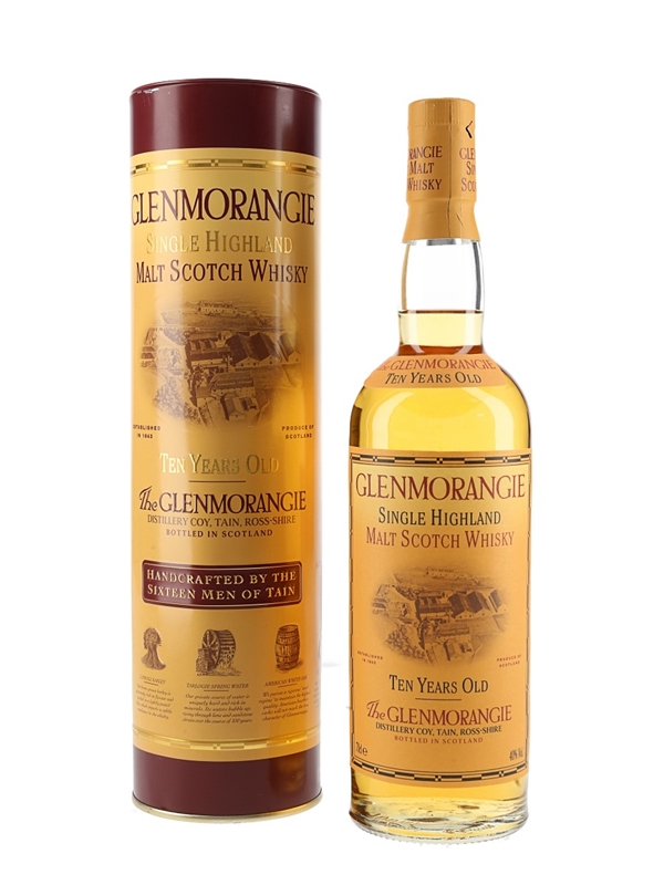 A bottle of Glenmorangie 10 Year Old Single Highland Malt Scotch whisky.