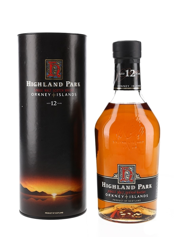 A litre bottle of Highland Park 12 Year Old Orkney Islands Single Malt Scotch Whisky. We estimate this was bottled in the 1990s.