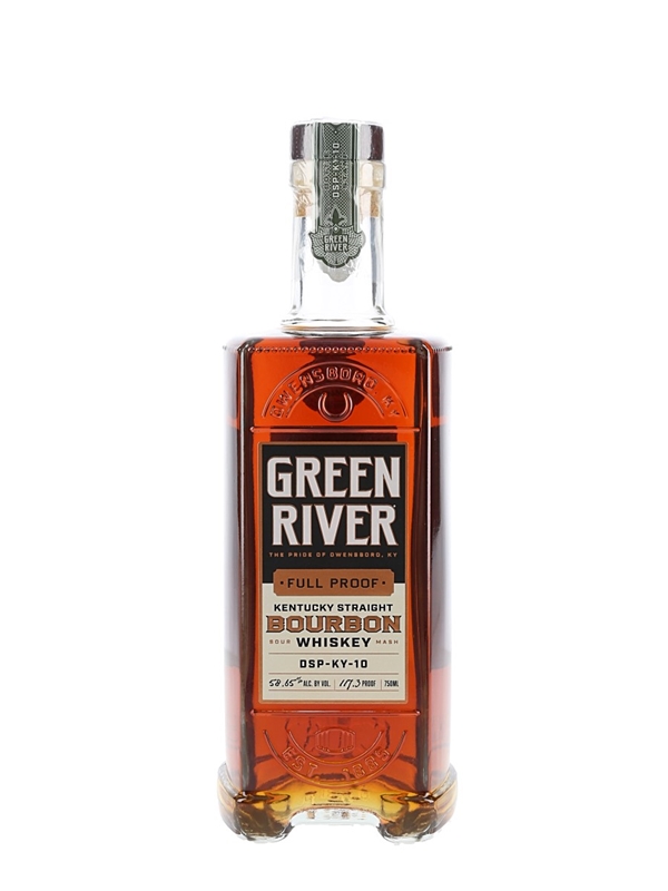 A bottle of Green River Full Proof Kentucky Straight Bourbon Whiskey.