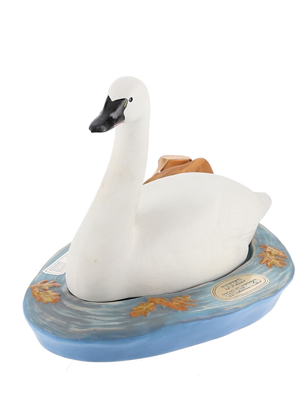 A decanter of Jim Beam 4 year Old Kentucky straight bourbon whiskey, presented in a Tundra Swan decanter.