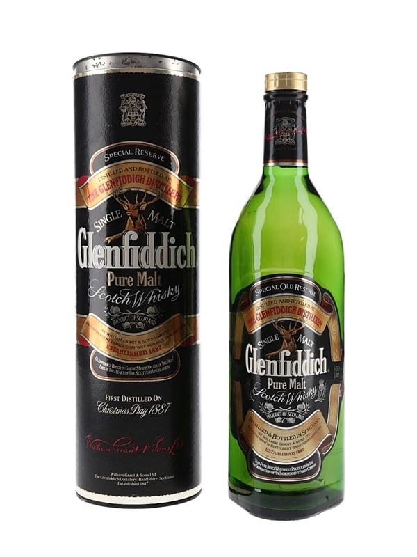 A litre bottle of Glenfiddich Special One Reserve Single Pure Malt Scotch Whisky distilled and bottled by William Grant and Sons Ltd, we estimate in the 1990s.