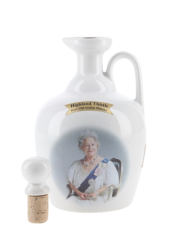 A bottle of Rutherford's Blended Scotch Whisky presented in a ceramic Montrose Pottery decanter to celebrate the 100th birthday of the Queen Mother in August 2000.