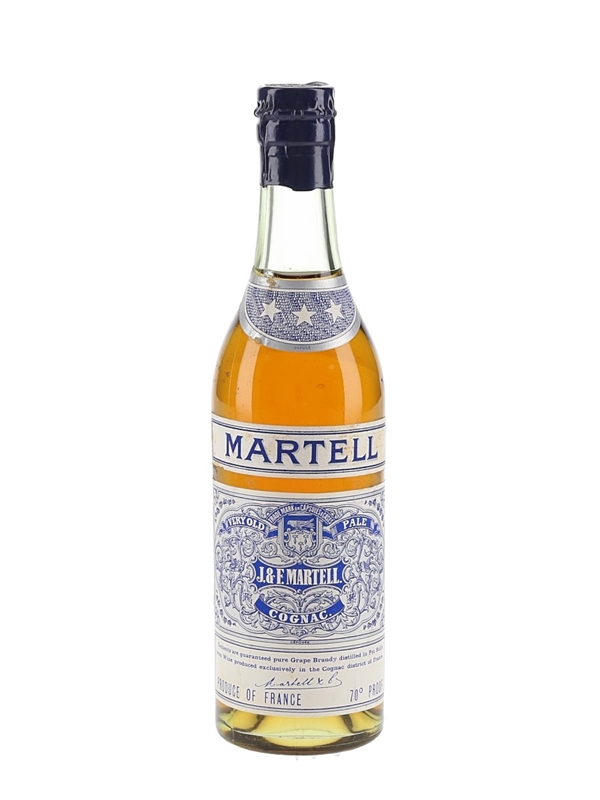 A 20cl bottle of Martell 3 Star Very Old Pale Cognac, sealed with a spring cap closure. We estimate this was bottled in the 1950s.