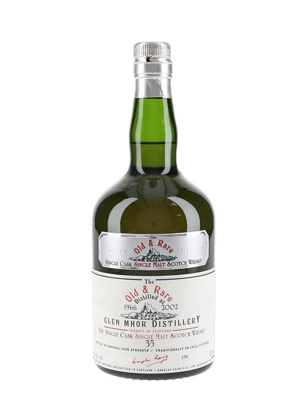 A bottle of Glen Mhor 35 Year Old Single Malt Scotch Whisky. This was distilled in 1966 and bottled in 2002 for Douglas Laing's Old & Rare Platinum Selection series.
