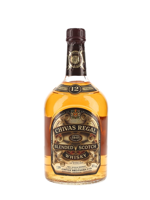 A litre bottle of Chivas Regal 12 Year Old blended Scotch whisky.