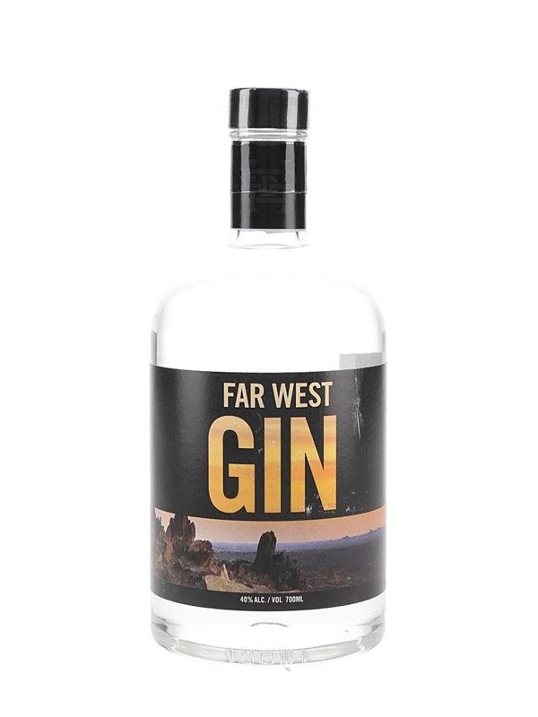 A bottle of Far West Gin produced in Australia and bottled at 40% ABV.
