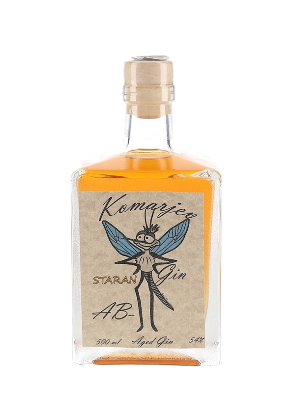 A bottle of Komarjev Aged Gin produced by Staran in Slovenia.
