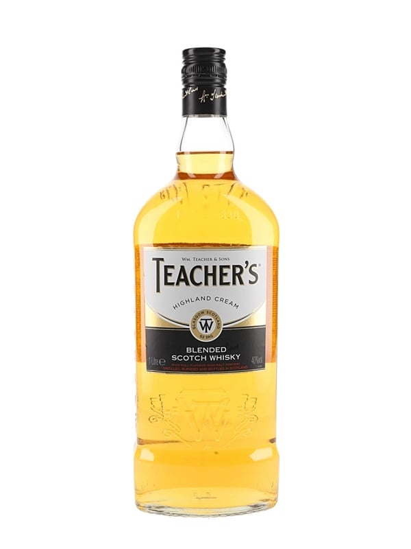 A litre bottle of Teacher's Highland Cream Perfection of Old Scotch Whisky. This was bottled by Wm Teacher & Sons Ltd.